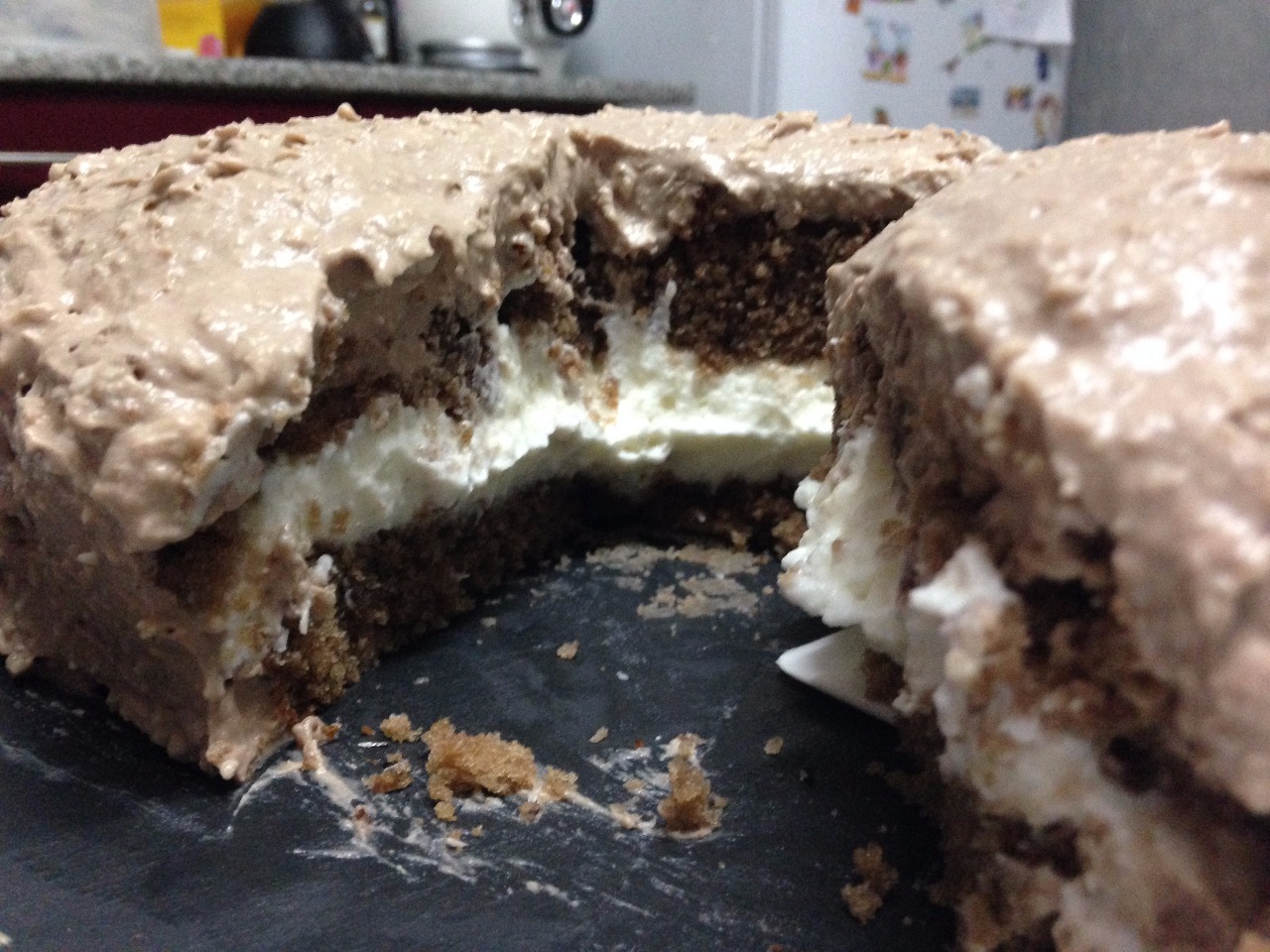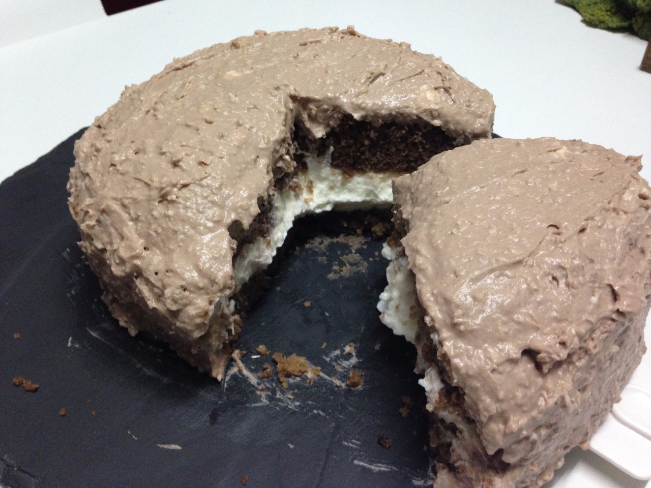 Recouvrez tout le gâteau de la crème chantilly Nutella/noix de coco.